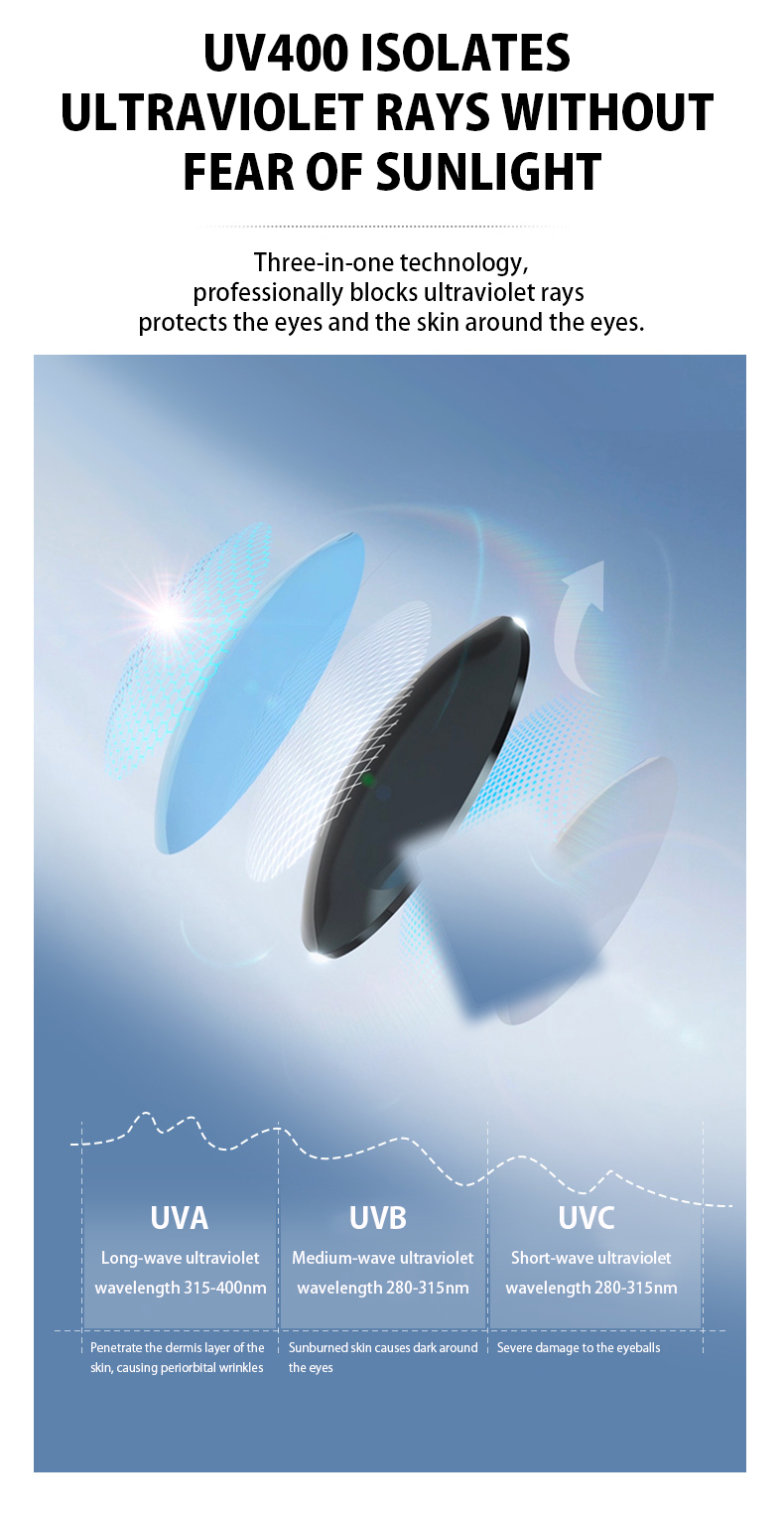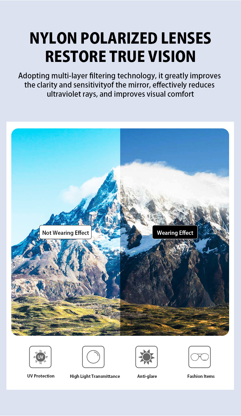 Sun Protection: Equipped with UV400 protection, our lenses block 100% of harmful UVA and UVB rays. The polarized technology reduces glare from reflective surfaces like water or roads, enhancing visual comfort and clarity and making driving and outdoor activities safer and more comfortable.